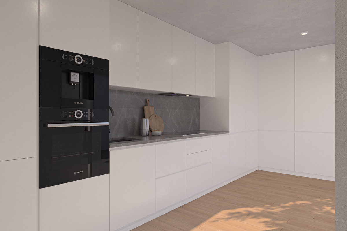 O Brito Capelo 1023 é constituído por 76 frações distribuídas por 4 pisos, pátios interiores, 2 pisos de estacionamento e uma sala de condomínio e receção.